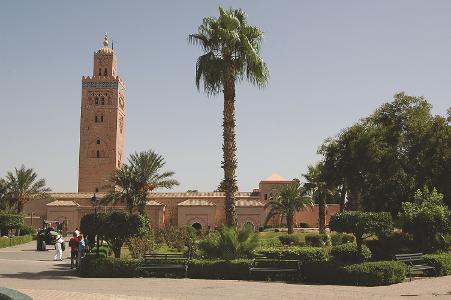 Marrakech ist vor der großartigen Kulisse des Hohen Atlas gelegen. Die belebten Souks, die Lage in einer Palmenoase und die roten Lehmbauten verleihen Marrakech den Charakter einer Wüstenstadt. Sie sehen die Koutoubia-Moschee, die Saadier-Gräber, den Bahia-Palast, das Bab Agnaou, die Souks, sowie den berühmten Place Djemaa el Fna, wo sich zu jeder Tageszeit ein unsagbares Treiben von Händlern, Volksunterhaltern, Märchenerzählern, Gauklern, Musikanten, Kartenlegern und Schlangenbeschwörern abspielt.